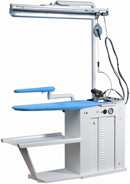 Гладильный стол с парогенератором и насосом подачи для непрерывного глажения отличается высокой простотой в эксплуатации.